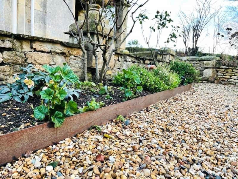 Az acélból készült ágyásszegély ideális dísznövények, bokrok vagy fák körülhatárolására kertekben és nyilvános területeken, mint például parkok.