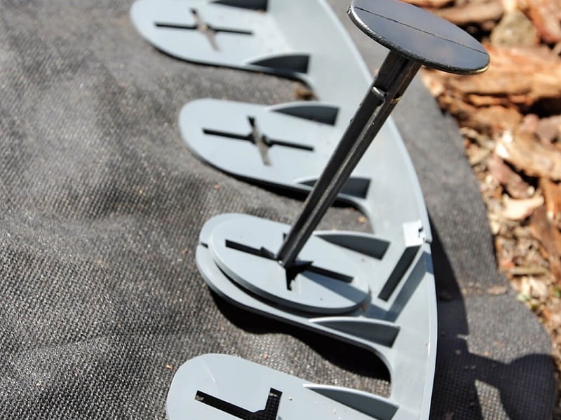 Figyelmeztetés: A műanyag rögzítő tüskék csak puhább talajhoz ajánlottak. Keményebb talajhoz előnyösebb pl. a Geopin Steel fém leszúró tüske vagy egyszerű fém cövekek (minden nagyobb barkácsüzletben kaphatóak) használata.