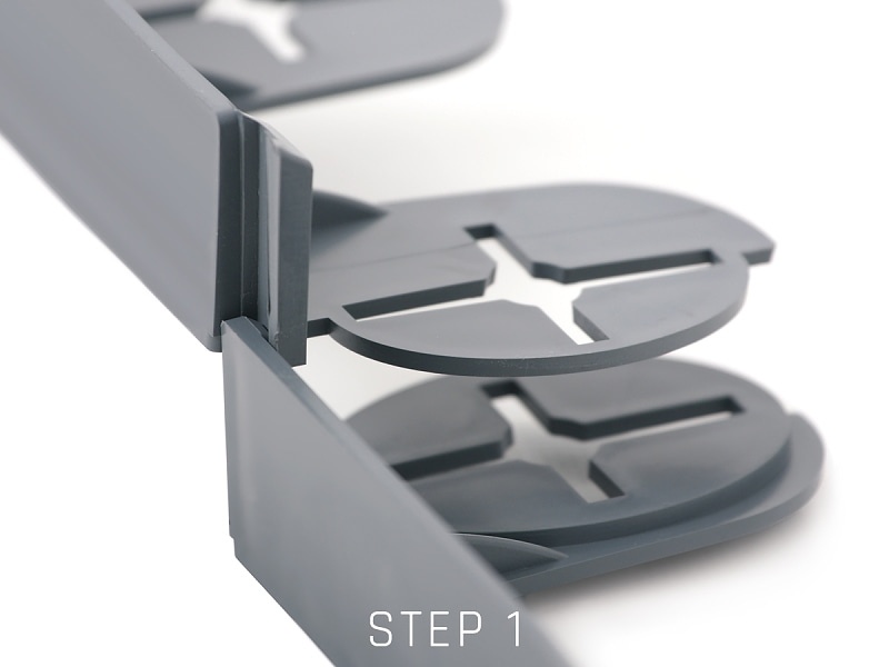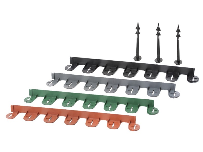 A csomagolásban található cövekek segítségével a rejtett ágyásszegély egyszerűen rögzíthető a talajban. Csatlakoztassa hozzá következő elemet a gyárilag kialakított kapcsolódási pontok segítségével – csak pattintsa össze őket, és máris tetszőleges hosszúságú gyepszegélyt alakíthat ki.