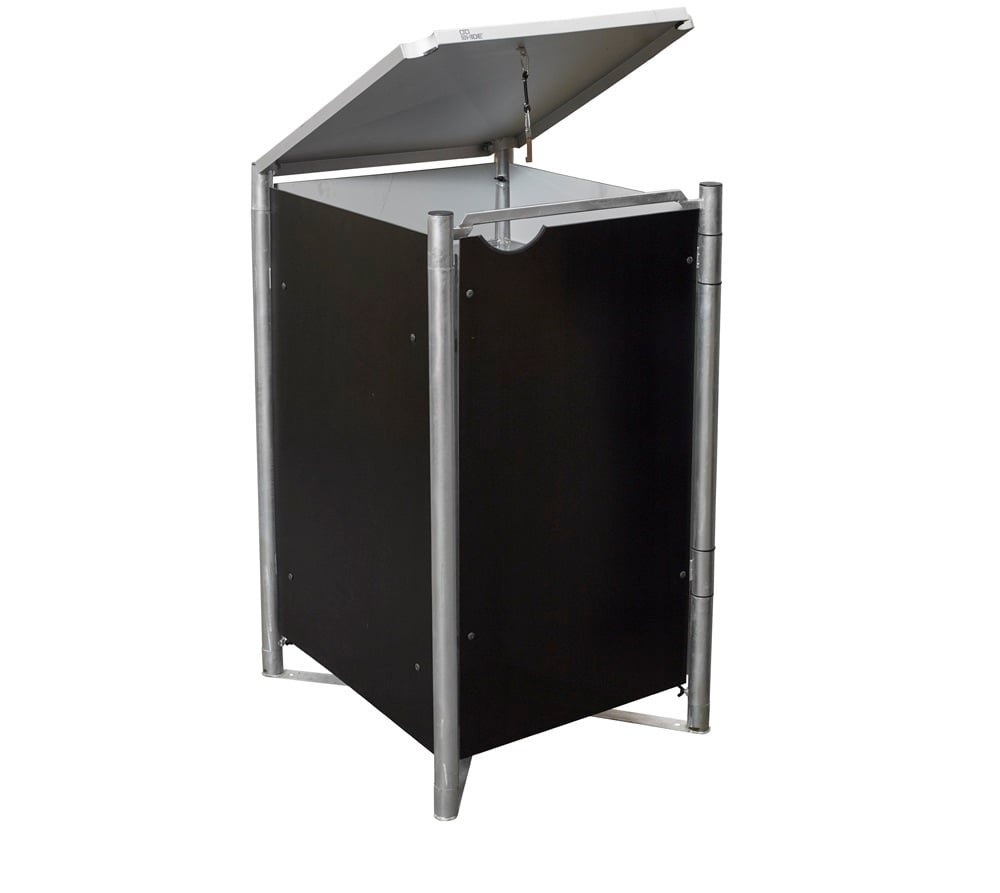 A Hide fém szeméttároló box praktikus megoldás egy darab, 240 literes kuka tárolására. Elegáns fekete kialakításának köszönhetően jól illeszkedik bármely házhoz vagy kerthez, miközben megvédi a kukát az időjárási hatásoktól és a nedvességtől.