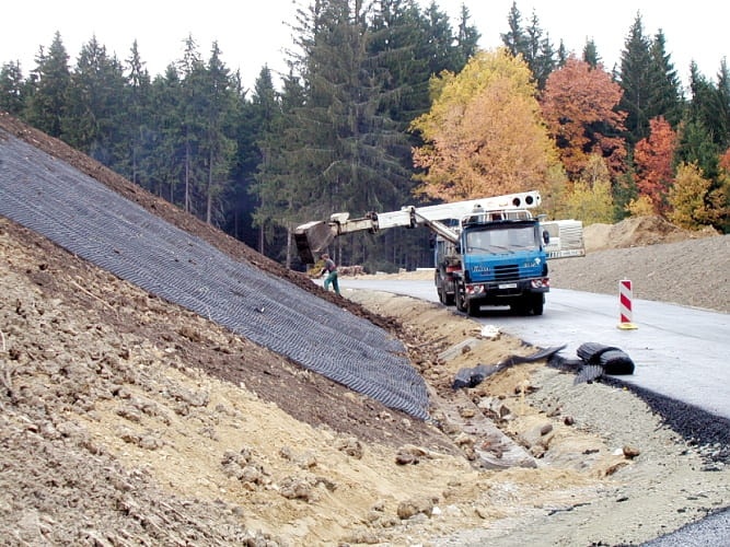 A műanyag geomatrac célja a földes lejtők tartós védelme a talajerózióval szemben. Ezt a megoldást „felszín alatti” erózióvédelemnek nevezik – a lefektetett geomatrac nem látható, és nem rontja a lejtő megjelenését.