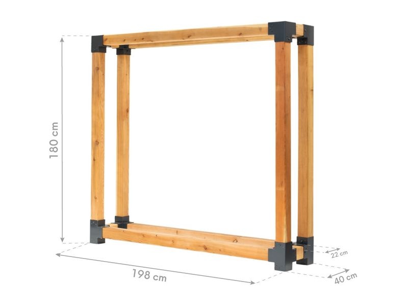 A masszív, 9×9 cm-es gerendákból és acél összekötő elemekből álló szerkezet nagy stabilitást biztosít még teljesen megrakva is. A nyitott kialakítás lehetővé teszi az optimális légáramlást, így a 25–40 cm hosszú fahasábok gyorsan kiszáradnak. Természetes megjelenésének és letisztult formájának köszönhetően a Michel 4 nemcsak tűzifatárolóként, hanem praktikus térelválasztóként vagy dekoratív kerti elemként is használható.