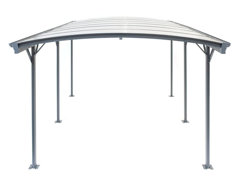 A Bergen alumínium kocsibeálló ívelt tetős kialakításával praktikus és elegáns megoldást nyújt az autó védelmére eső, hó és erős napsütés ellen. Modern formatervezésének köszönhetően jól illik családi házakhoz és kertekhez, emellett kültéri fedett pihenőhelyként is használható.