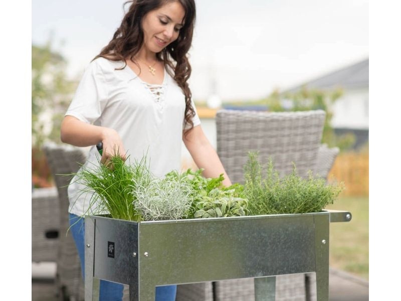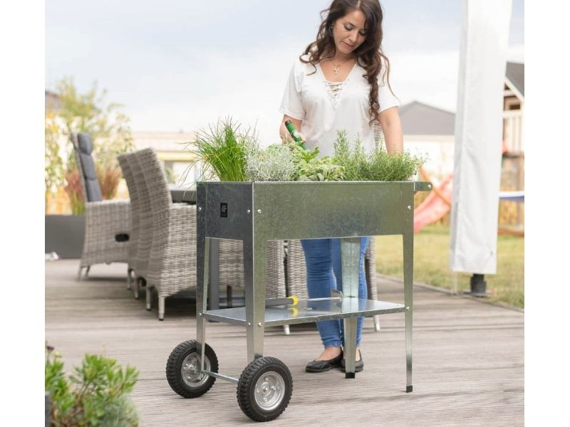 Ez a modern magaságyás méretének köszönhetően ideális teraszokra, erkélyekre és kertekbe, a kerekek és a fogantyú révén pedig könnyen mozgatható. Alkalmas mindenféle növény, így fűszernövények ültetésére is. Magassága kényelmes munkavégzést biztosít, kímélve a hátat a növények gondozásakor.