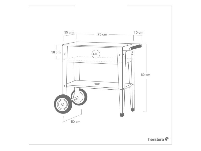Ez a modern magaságyás méretének köszönhetően ideális teraszokra, erkélyekre és kertekbe, a kerekek és a fogantyú révén pedig könnyen mozgatható. Alkalmas mindenféle növény, így fűszernövények ültetésére is. Magassága kényelmes munkavégzést biztosít, kímélve a hátat a növények gondozásakor.