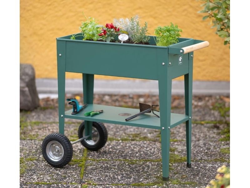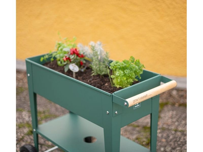 Ez a modern magaságyás méretének köszönhetően ideális teraszokra, erkélyekre és kertekbe, a kerekek és a fogantyú révén pedig könnyen mozgatható. Alkalmas mindenféle növény, így fűszernövények ültetésére is. Magassága kényelmes munkavégzést biztosít, kímélve a hátat a növények gondozásakor.