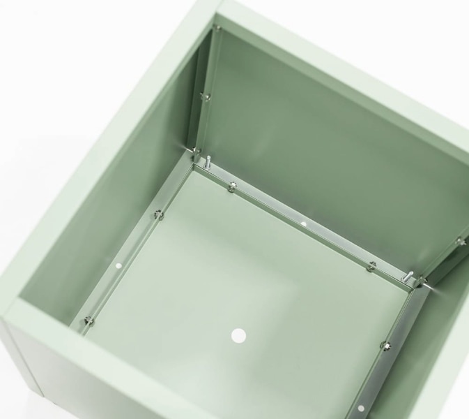 Sokoldalúan használható, akár magaságyásként is funkcionálhat. A test porszórt acélból készült, ennek köszönhetően a virágcserép rozsdamentes, és bármilyen időjárási körülmények között használható.