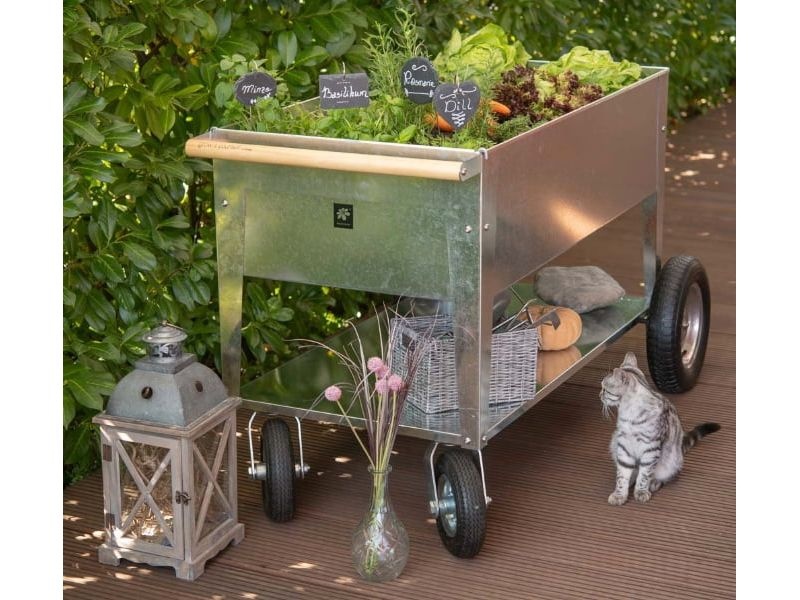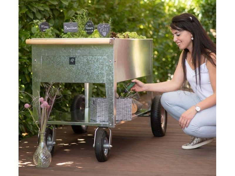 Ez a modern magaságyás méretének köszönhetően ideális teraszokra, erkélyekre és kertekbe, a kerekek és a fogantyú révén pedig könnyen mozgatható. Alkalmas mindenféle növény, így fűszernövények ültetésére is. Magassága kényelmes munkavégzést biztosít, kímélve a hátat a növények gondozásakor.