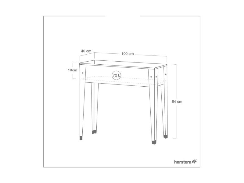 Sokoldalúan használható, akár virágládaként is funkcionálhat. A test porszórt acélból készült, ennek köszönhetően a magaságyás korrózióálló és minden időjárási körülmény között használható.