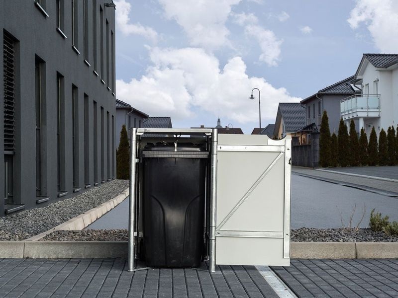 A Hide fém szeméttároló box praktikus megoldás egy darab, 240 literes kuka tárolására. Elegáns fekete kialakításának köszönhetően jól illeszkedik bármely házhoz vagy kerthez, miközben megvédi a kukát az időjárási hatásoktól és a nedvességtől.