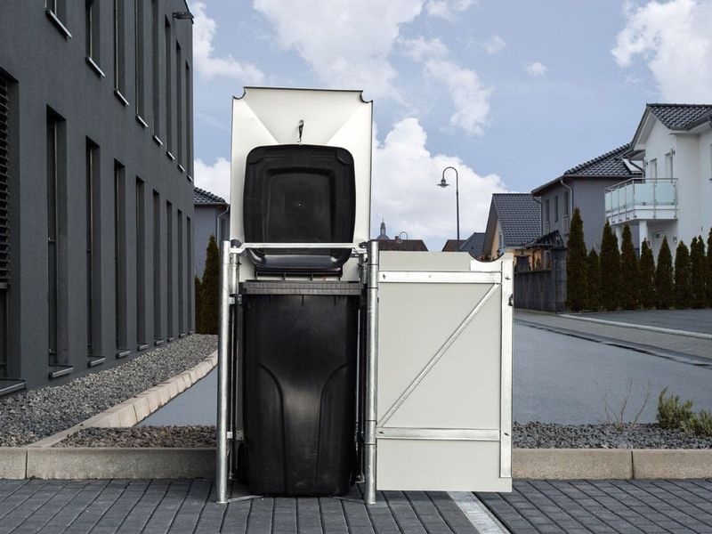 A Hide fém szeméttároló box praktikus megoldás egy darab, 240 literes kuka tárolására. Elegáns fekete kialakításának köszönhetően jól illeszkedik bármely házhoz vagy kerthez, miközben megvédi a kukát az időjárási hatásoktól és a nedvességtől.