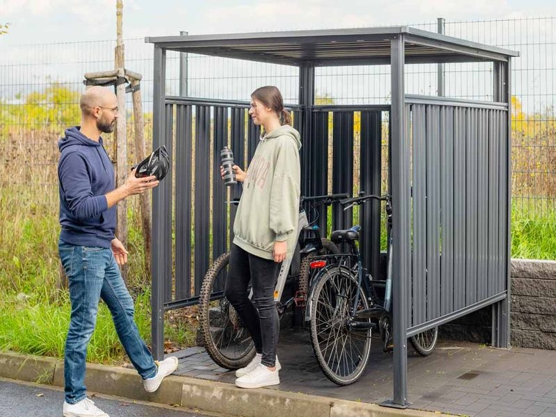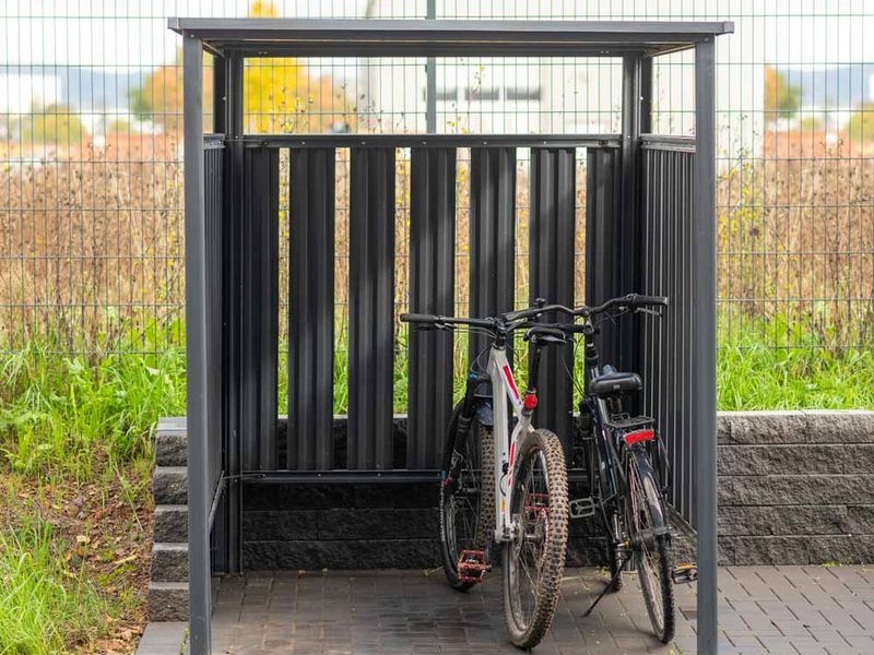 Az acél kerékpár garázs praktikus, sokoldalúan használható fedett tároló – megvédi a kerékpárokat, a kerti felszerelést, és akár dohányzósarokként is szolgálhat. A porszórt acélból készült masszív szerkezet ellenáll a korróziónak és az időjárás viszontagságainak, így egész évben használható.