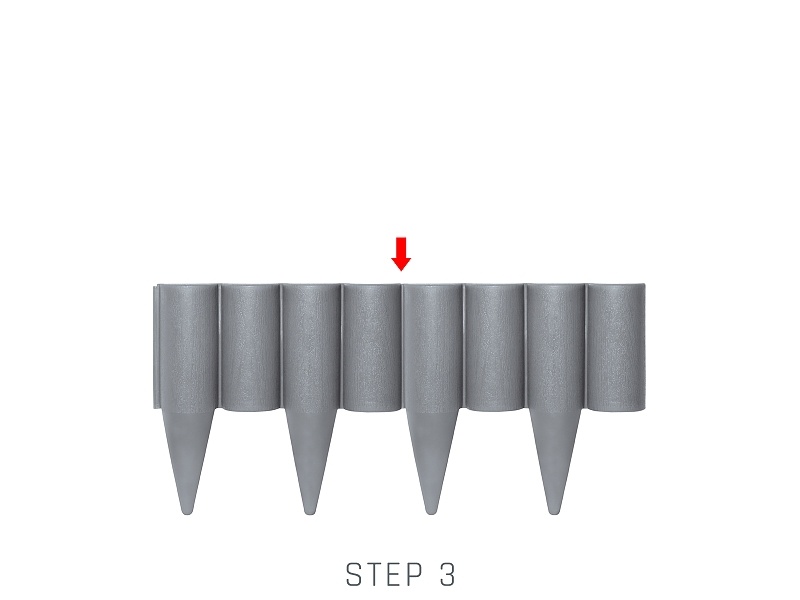 Ezt pattintsa a már leszúrt elem gyárilag kialakított kapcsolódási pontjához. Ezzel a módszerrel korlátlan hosszúságú szalagot alakíthatunk ki a kerti pázsitszegélyből.