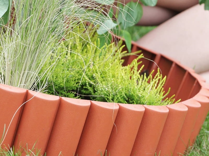 A gyepszegély magas rugalmassággal rendelkezik, ezért ívesre is formázhatjuk. További előnye stílusos megjelenése, amely anélkül újítja meg az ágyások közötti teret, hogy ez az Ön kertje esztétikus megjelenésének kárára lenne.