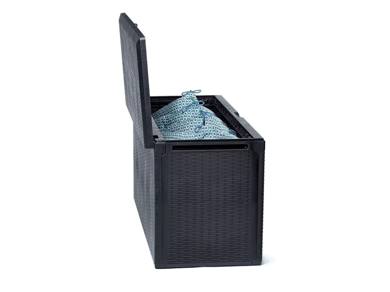 290 vagy 310 literes kapacitású műanyag tárolódoboz. Megbízható megoldás székpárnák, kerti eszközök, párnák, takarók vagy játékok tárolására. A tárolódoboz kis kerekkel, oldalain fogantyúkkal is rendelkezik, ami megkönnyíti a mozgatását. Alapanyaga műanyag, amely megvédi a tárolt dolgokat a széltől és a napfénytől. A tárolóládát nem ajánlott közvetlen csapadék hatásának kitenni (nem vízálló).