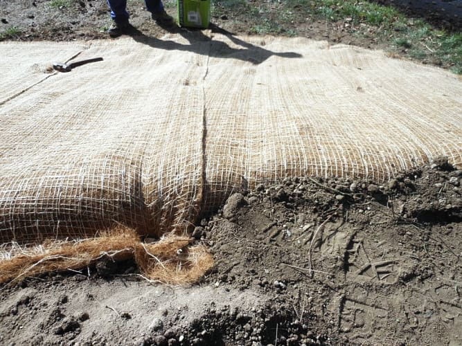 A jutahálóval megerősített kókusz erózióvédelmi matrac lejtők füvesítésére is alkalmas. Füvesített lejtőkön alternatív megoldást jelenthet a Geomanet K EKO kókuszháló.
