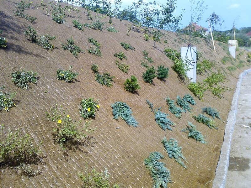 A nagyobb növényeket, bokrokat és fákat a kókusz erózióvédelmi matrac fektetése előtt ültessük el.