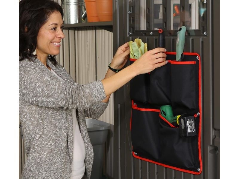 A ház dupla ajtókkal van ellátva, pántos kialakítással, üvegezett betéttel, melyek kényelmes hozzáférést biztosítanak a tárolandó eszközökhöz. A falak sima, világosszürke felületének köszönhetően a ház természetes módon illeszkedik bármely kert kialakításához.