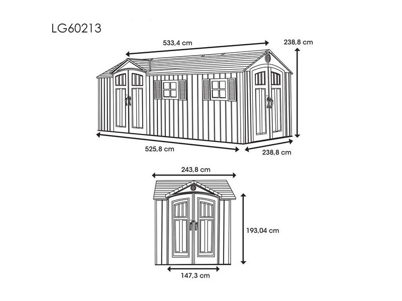 Kétszárnyú ajtókkal rendelkezik. Ideális kerti eszközök tárolására. Tökéletes kiegészítő kerti, sporteszközök, medence‑, grill tartozékok vagy más áruk tárolására. A ház fő előnyei: modern megjelenés, útmutató szerinti könnyű szerelhetőség és egész éves használhatóság.