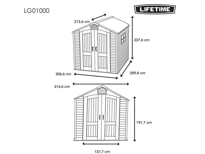 A Lifetime kiváló minőségű tárolói a piac legstabilabb és legtartósabb műanyag kerti házai közé tartoznak. A műanyag kerti ház ideális kertészeti, sport-, medence-, grill- és egyéb felszerelések tárolására. A ház fő előnyei a modern megjelenés, az egyszerű összeszerelés az útmutató alapján, valamint az egész éves használhatóság.