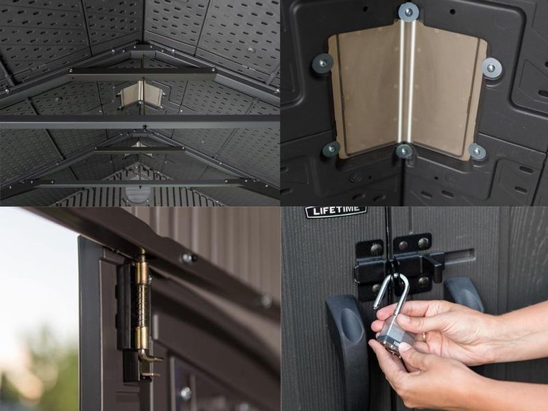 A csomag tartalmaz egy 228 × 25 cm-es polcot, valamint két sarokpolcot, amelyek még kényelmesebbé teszik a tárolást. Továbbá hat darab fali akasztó is tartozik hozzá, amelyekre például kerti ollót akaszthat, hogy mindig szem előtt legyen.