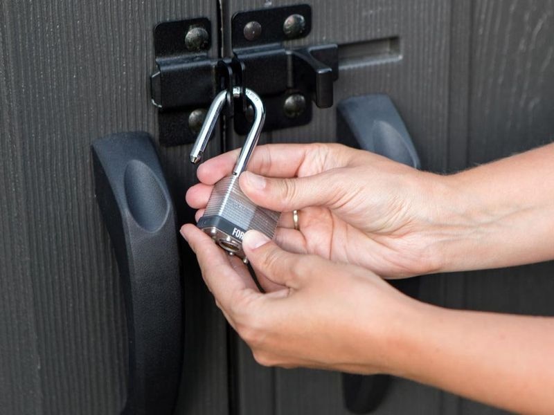 A ház nagy kétszárnyú ajtókkal rendelkezik, amelyek könnyű hozzáférést biztosítanak akár szélesebb felszerelésekhez is.