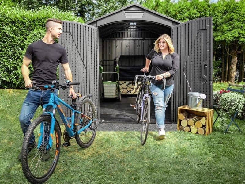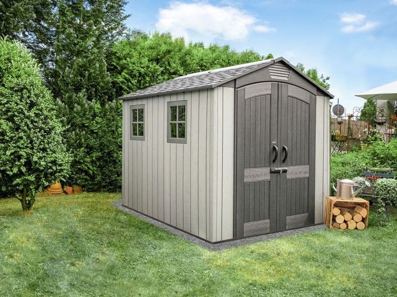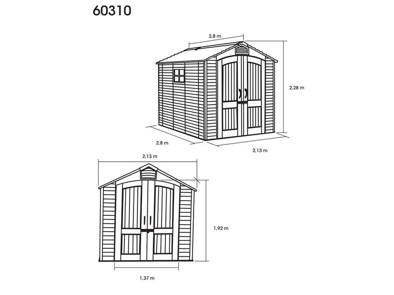 A dupla falú, fémmel megerősített HDPE (nagy sűrűségű polietilén) konstrukció kivételes stabilitást nyújt. A tetőváz acélból készült, és akár 195 kg/m² hóterhelést is elbír, az optimális tetődőlés pedig gyors víz- és hóelvezetést tesz lehetővé.