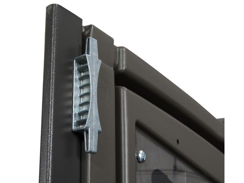 A ház nagyméretű kétszárnyú ajtókkal rendelkezik, amelyek könnyű hozzáférést biztosítanak akár szélesebb felszerelésekhez is.