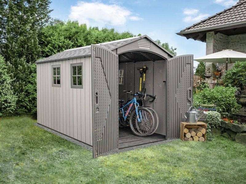 A ház nagyméretű kétszárnyú ajtókkal rendelkezik, amelyek könnyű hozzáférést biztosítanak akár szélesebb felszerelésekhez is.