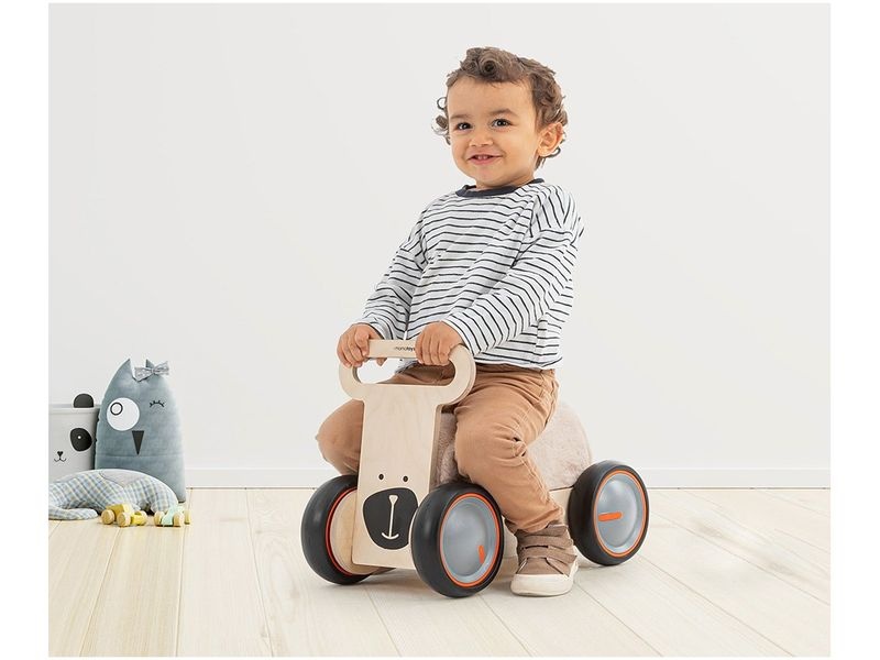 A MamaToyz Medve autója és járókája ideális kombinációja a szórakozásnak és a tanulásnak kis felfedezői számára. Ez a kedves és változatos gyermek járgány támogatja a mozgásfejlődést, miközben órákon át tartó szórakozást biztosít. Átgondolt kialakítása biztonságos, és 12 hónapos kortól 3 éves korig ajánlott gyermekek számára. Az összes fa kerék meghúzható vagy lazítható, így szabályozható a kerék forgási sebessége.