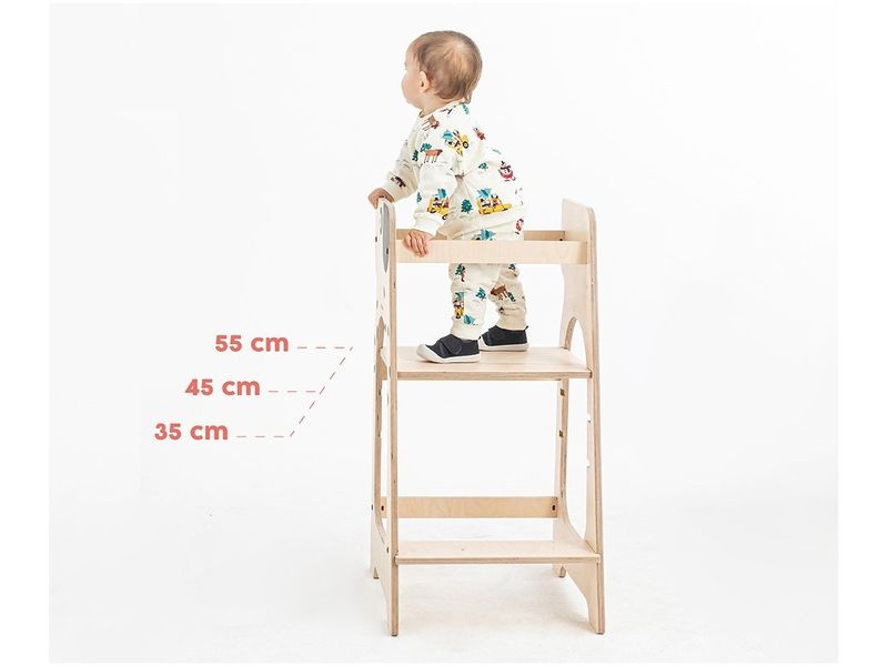 A MamaToyz fa tanulótorony Dog úgy lett tervezve, hogy új élményeket nyújtson gyermekének, és támogassa fejlődését. Ezzel a toronnyal kis felfedezője biztonságosan részt vehet a mindennapi tevékenységekben, fejlesztheti a finom motoros képességeit, és új nézőpontból ismerheti meg a világot. A torony magassága három szinten állítható (35 cm, 45 cm, 55 cm), így gyermekével együtt nő, és igazodik igényeihez, fejlődéséhez.