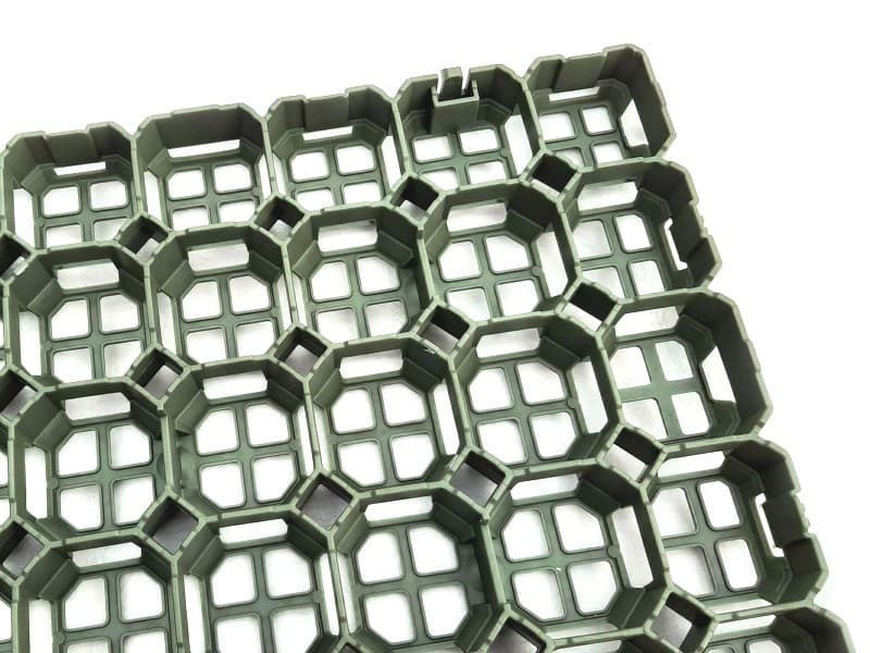 A gyeprácsok nagy sűrűségű polietilénből készülnek – egy tartós műanyagból, amely nehézfémektől mentes. Nem bocsát ki káros anyagokat, és nem károsítja a környezetet. Ez az anyag ellenálló az UV-sugárzással, a széllel, a hóval és a faggyal szemben.