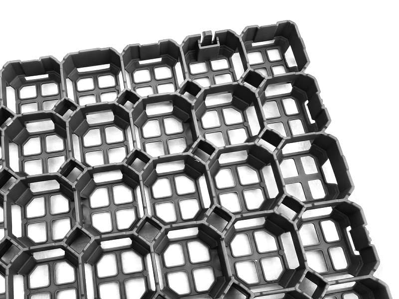Ezek a műanyag burkolólapok alkalmasak kavics feltöltésére. Az egyedülálló cellaszerkezet megakadályozza a kavics aljzatba történő beágyazódását­.Cellafal vastagság: 4 mm (±1,5 mm).