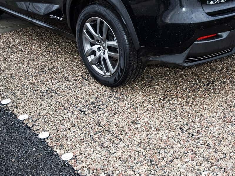 Rakjunk le 15 cm-es kavicsréteget (16-32 mm-es), tömörítsük, fektessük le a gyeprácsot (horgonyrudaink erre az esetre nincsenek, próbáljon meg pl. betonvasból készíteni) és fedjük le 4-8 mm-es kaviccsal és enyhén tömörítsük. Nem tudom, milyen terepen lenne az út, de enyhén lejtősnek kell lennie a kontúrok irányába, hogy ne „vályúként” szolgáljon a víz számára, és a víz az út szélére folyhasson. Üdvözlettel: Martin Rameš
