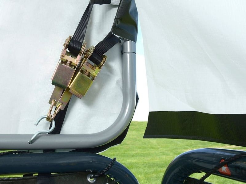 A csomagban található egy kötél, amely a ponyva rögzítésére szolgál a szerkezet keretéhez, így védelmet nyújt a szél és az időjárás viszontagságai ellen.