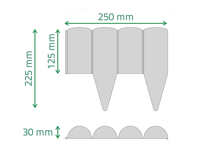 A pázsitszegély kis tömegű, ezért könnyen kezelhető, telepítése pedig gyors és egyszerű. A tüskék segítségégel szúrja le a gyepszegélyeket a földbe, ezzel rögzítve őket a talajban. Ezután már csak a következő gyepszegélyelemet kell hozzákapcsolnia.