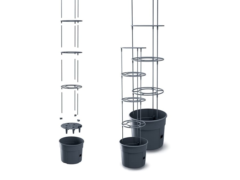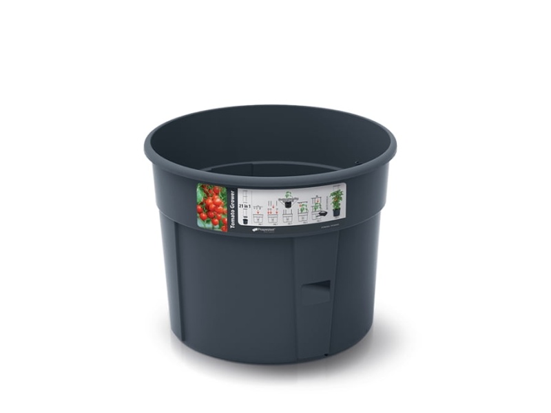 A decens, antracit design ízléses kiegészítővé teszi a paradicsomültető edényt, amely az erkély, terasz vagy kert igazi ékköve lesz.