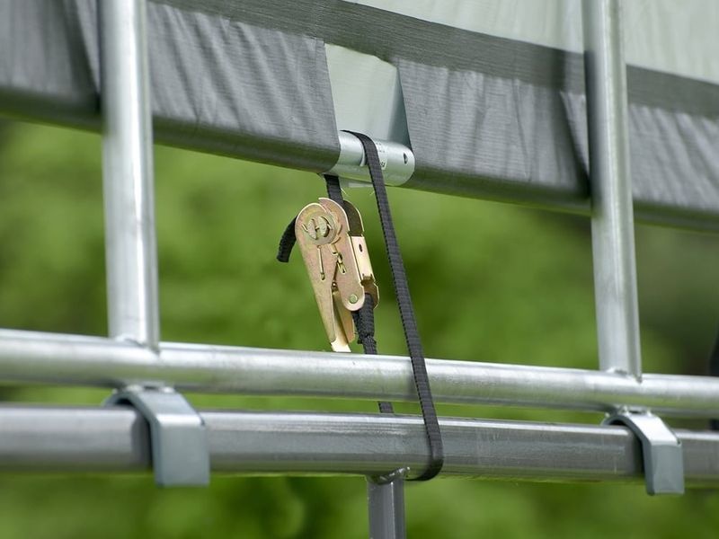 Ezek a tényezők jelentősen befolyásolhatják a polietilén ponyva élettartamát. Az élettartamra vonatkozó információk kizárólag az összeszerelési útmutató szerinti rögzítés mellett érvényesek.