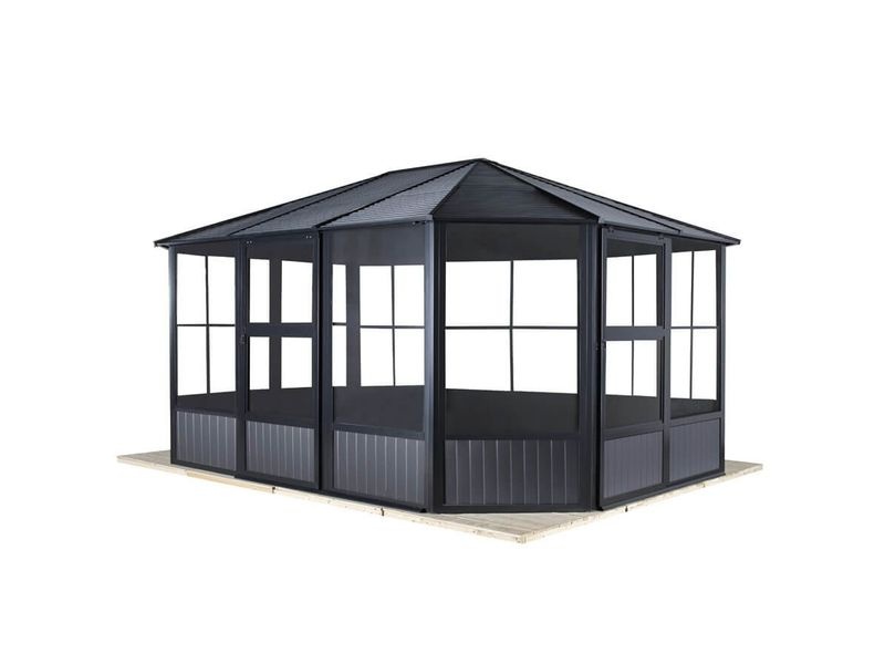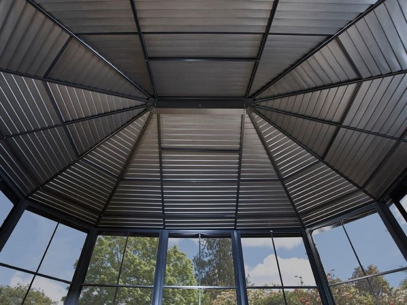 A pavilon tetője kiváló minőségű horganyzott acélból készült.