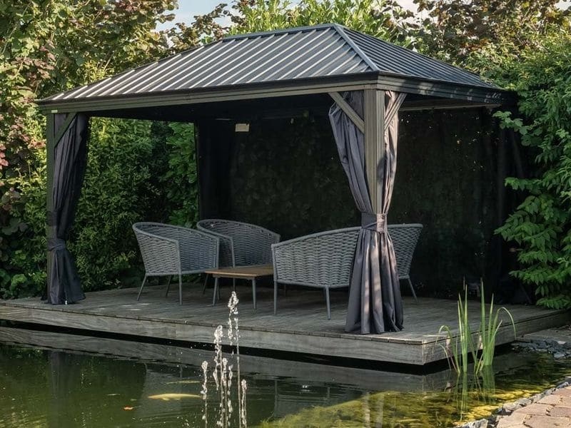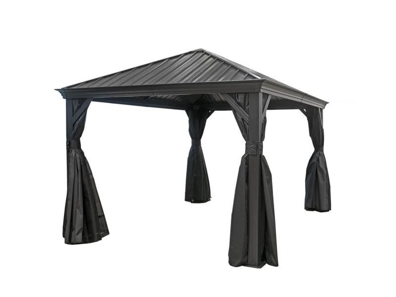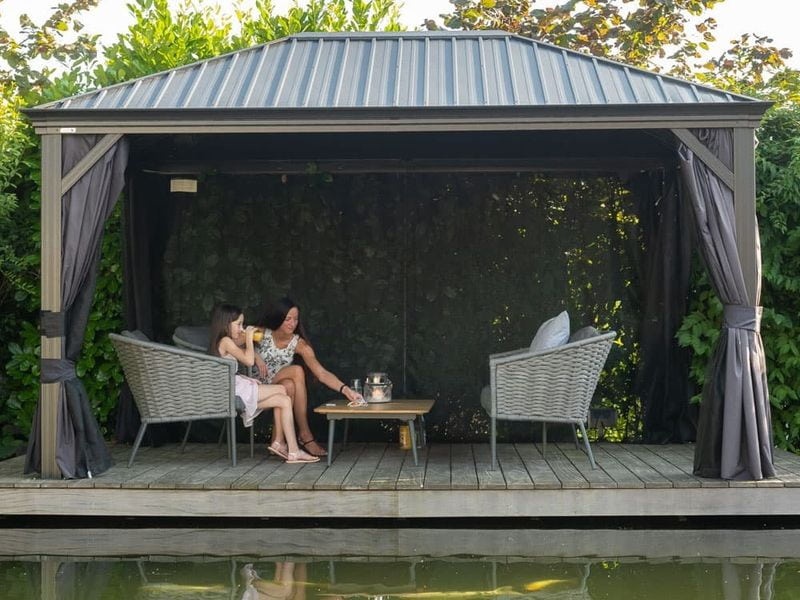 Az alumínium kerti pavilon kellemes és hangulatos pihenőhelyet biztosít a ház mellett vagy a kert bármely pontján. Szúnyoghálóval van ellátva, amely megvéd a szúnyogoktól a meleg nyári estéken.