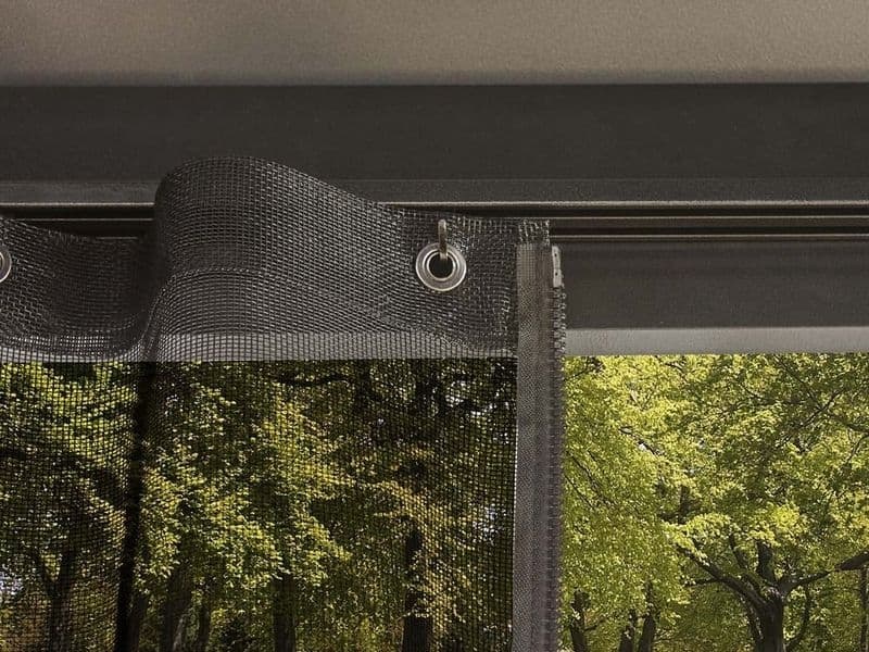 A pavilonhoz nylon szúnyoghálók tartoznak. Kiegészítőként poliészter függönyök is megvásárolhatók. A kettős sínrendszernek köszönhetően a szúnyoghálók és a függönyök egyidejűleg is rögzíthetők. Más modellektől eltérően itt nem „vagy-vagy” megoldásról van szó – a szúnyoghálót és a függönyt egyszerre is lehet használni.