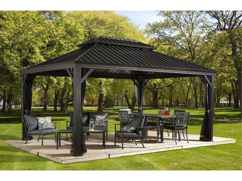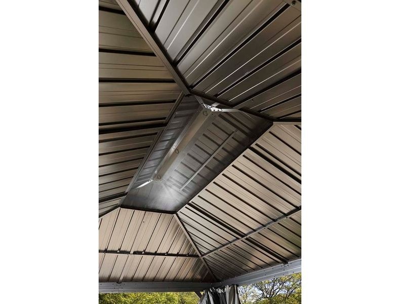 Az alumínium kerti pavilon kellemes és hangulatos pihenőhelyet biztosít a ház mellett vagy a kert bármely pontján. Szúnyoghálóval van ellátva, amely megvéd a szúnyogoktól a meleg nyári estéken.