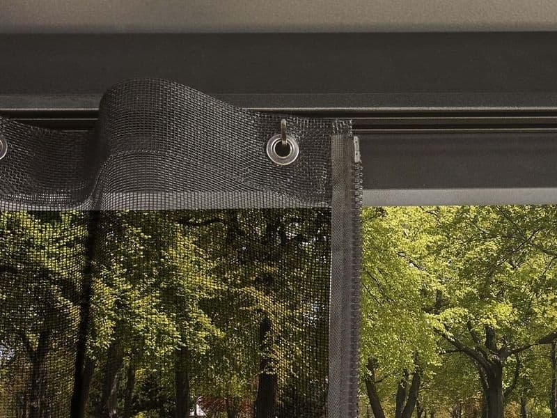 A pavilonhoz nylon szúnyoghálók tartoznak. Kiegészítőként poliészter függönyök is megvásárolhatók. A kettős sínrendszernek köszönhetően a szúnyoghálók és a függönyök egyidejűleg is rögzíthetők. Más modellektől eltérően itt nem „vagy-vagy” megoldásról van szó – a szúnyoghálót és a függönyt egyszerre is lehet használni.