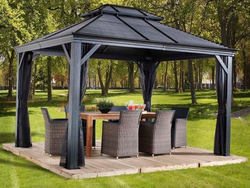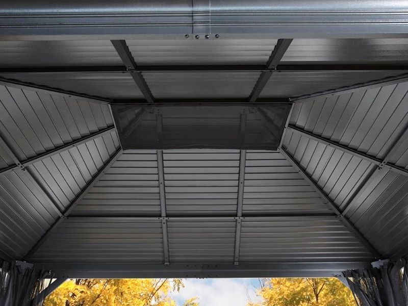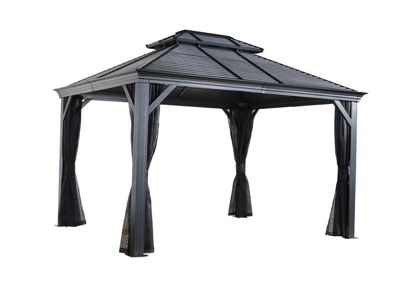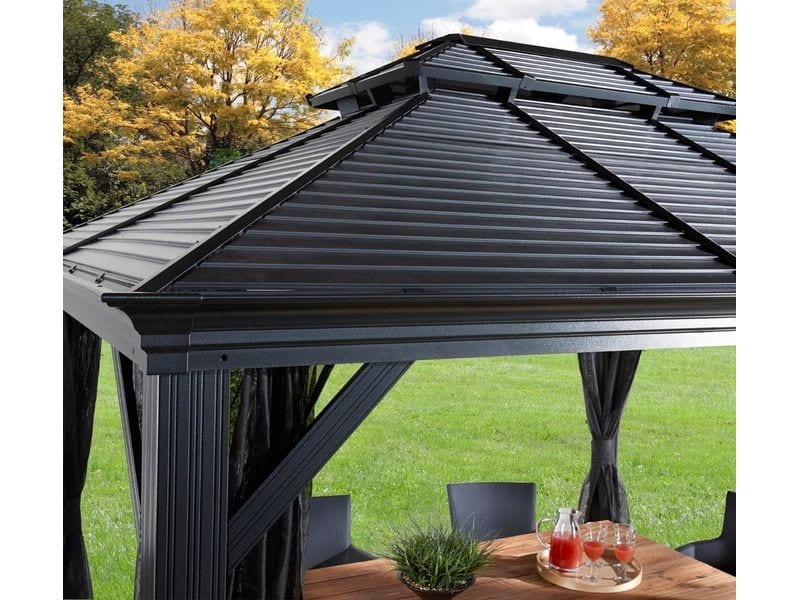 Az alumínium kerti pavilon kellemes és hangulatos pihenőhelyet biztosít a ház mellett vagy a kert bármely pontján. Szúnyoghálóval van ellátva, amely megvéd a szúnyogoktól a meleg nyári estéken.