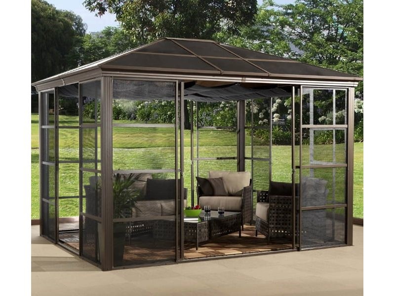 Az alumínium kerti pavilon kellemes, otthonos környezetet teremt a kertben, elegáns megjelenésével feldobja a tér hangulatát. Szúnyoghálóval, légáteresztő tetővel és dupla tolóajtókkal rendelkezik.