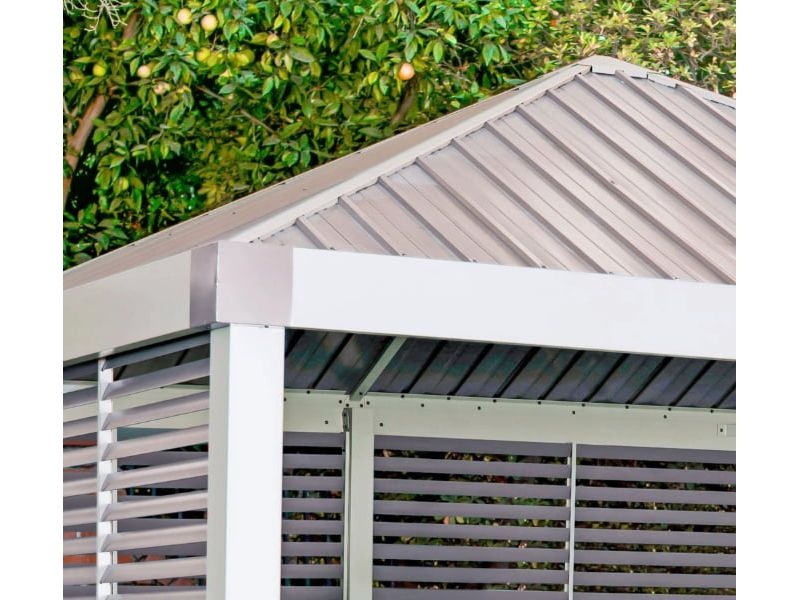 Az alumínium kerti pavilon kellemes és otthonos helyet teremt, amely ideális a pihenéshez és a családdal töltött időhöz. Kiválóan mutat a ház mellett vagy a kert bármely pontján.