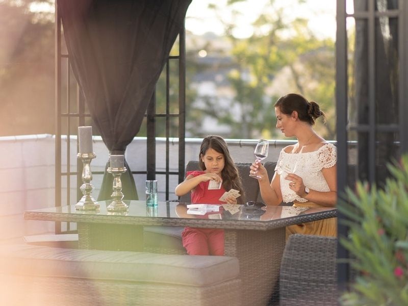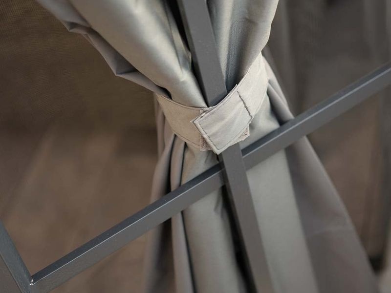 A pavilonhoz nylon szúnyoghálók tartoznak. Kiegészítőként poliészter függönyök is megvásárolhatók. A kettős sínrendszernek köszönhetően a szúnyoghálók és a függönyök egyidejűleg is rögzíthetők. Más modellektől eltérően itt nem „vagy-vagy” megoldásról van szó – a szúnyoghálót és a függönyt egyszerre is lehet használni.