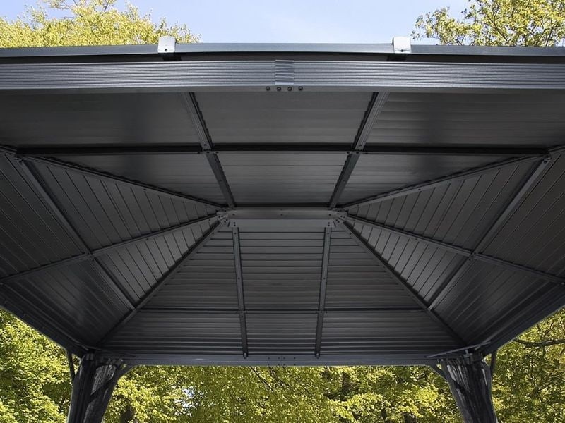 A pavilon teteje tartós acélból készült, amely mindig