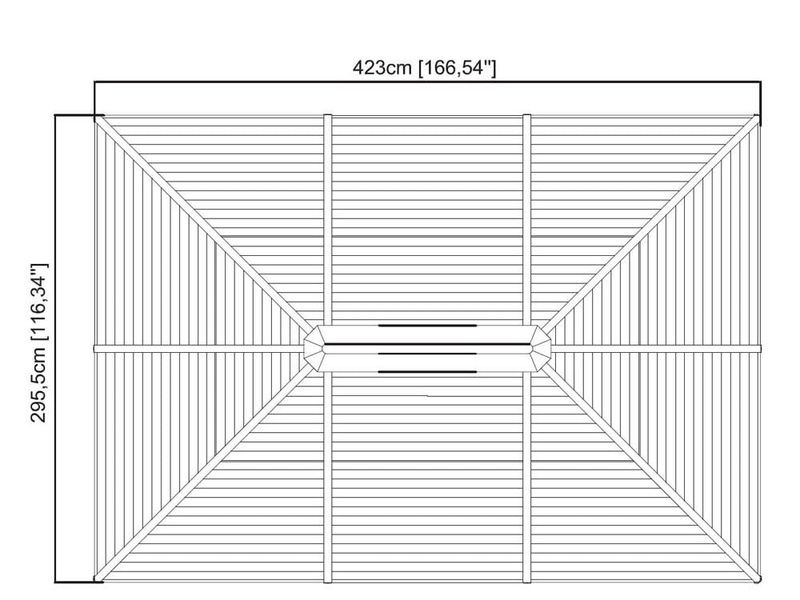 A pavilon teteje tartós acélból készült, amely mindig