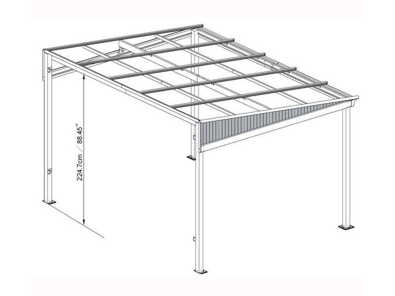 Pergola a falhoz alumíniumból kellemes és otthonos pihenőhelyet biztosít közvetlenül az otthona mellett. Szúnyoghálóval és hosszú függönyökkel van ellátva, amelyek a forró nyári napokon árnyékot és magánszférát biztosítanak.